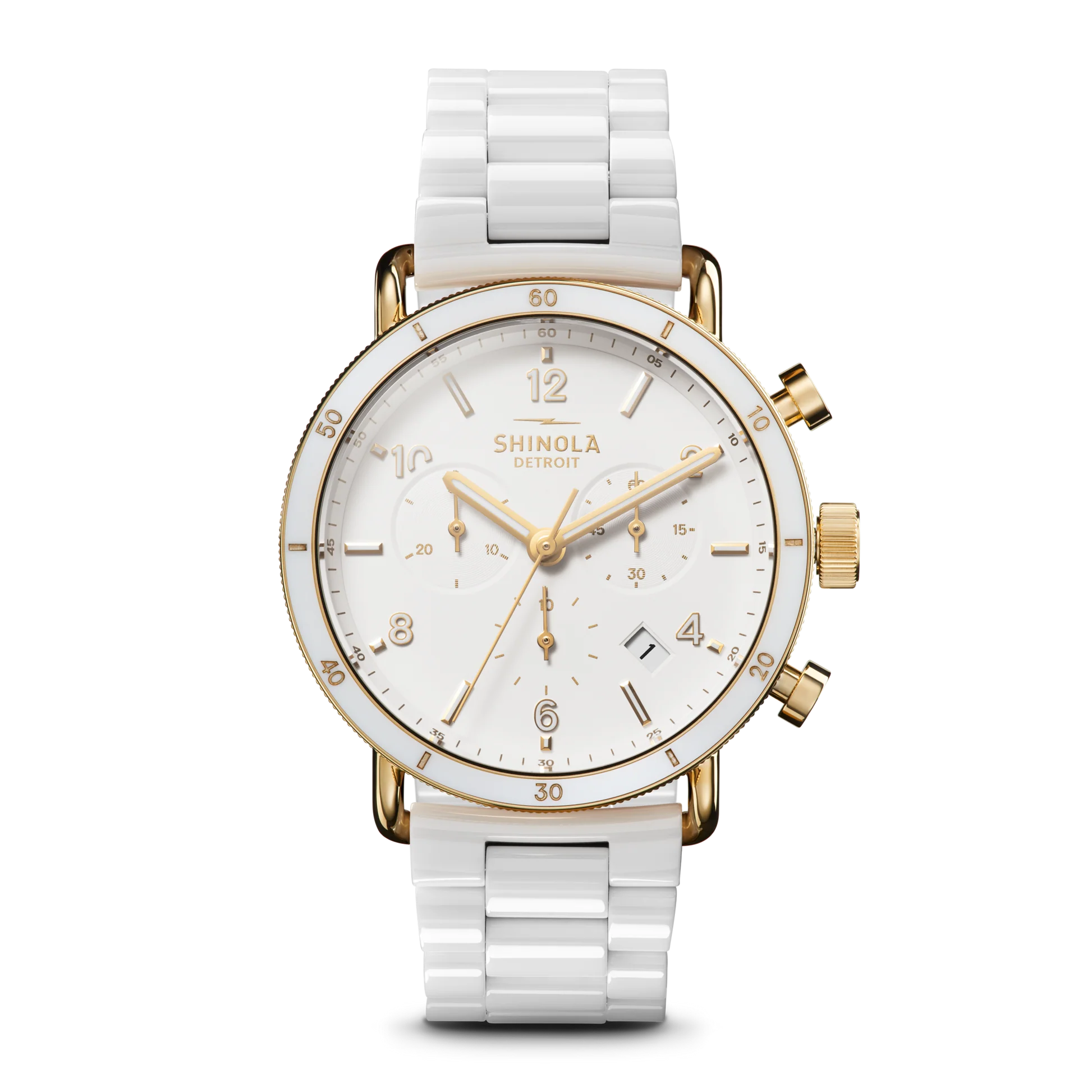 Canfield Sport Watch 40mm, White Ceramic, MOP