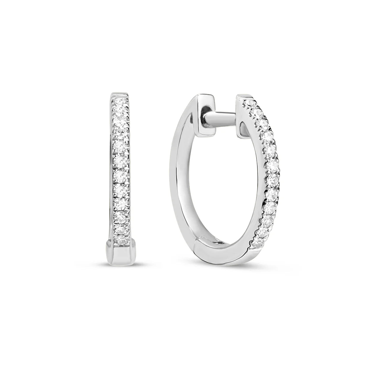 Tiny diamonds meet timeless elegance in these 1-row huggy earrings. Crafted in 14K white gold with 0.08 carats of sparkling diamonds, these 12mm huggies hug your earlobe with understated glamour. Perfect for everyday wear or layering with your favorite studs—because sometimes the best accessories are the ones that make you smile every time you catch your reflection.