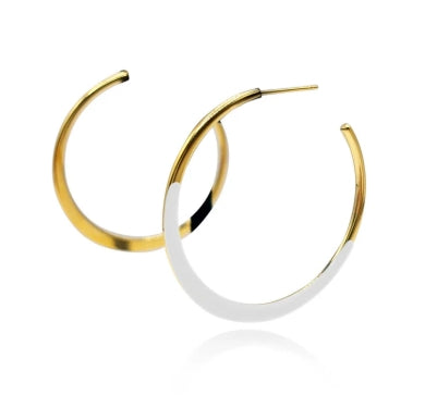 Enhance your daily look with these Gold and White Enamel Hoop Earrings. These classic yet trendy earrings effortlessly enhance any ensemble. Lightweight and comfortable, they add a subtle touch of sophistication to your outfit.