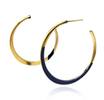 Enhance your daily look with these Gold and Black Enamel Hoop Earrings. These classic yet trendy earrings effortlessly enhance any ensemble. Lightweight and comfortable, they add a subtle touch of sophistication to your outfit.