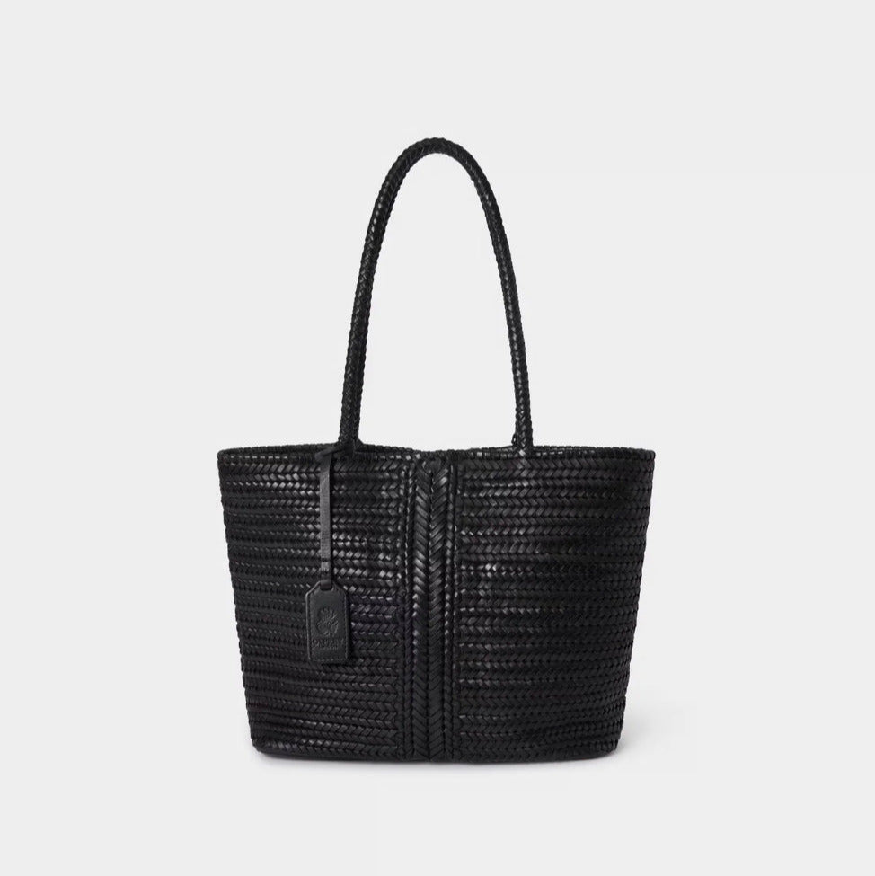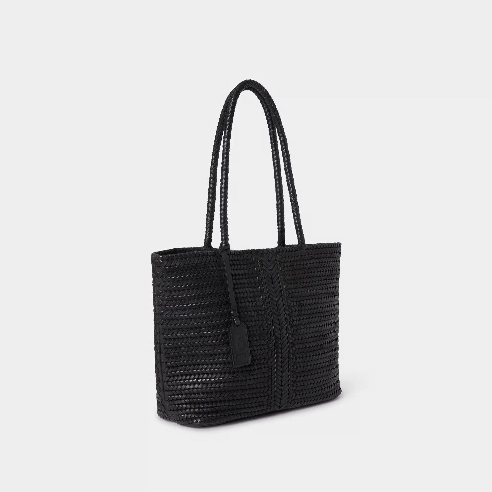 Made from luxurious woven leather, this bucket bag features an effortlessly stylish braided handle and detachable, adjustable shoulder strap, offering versatility for both day and evening wear.
