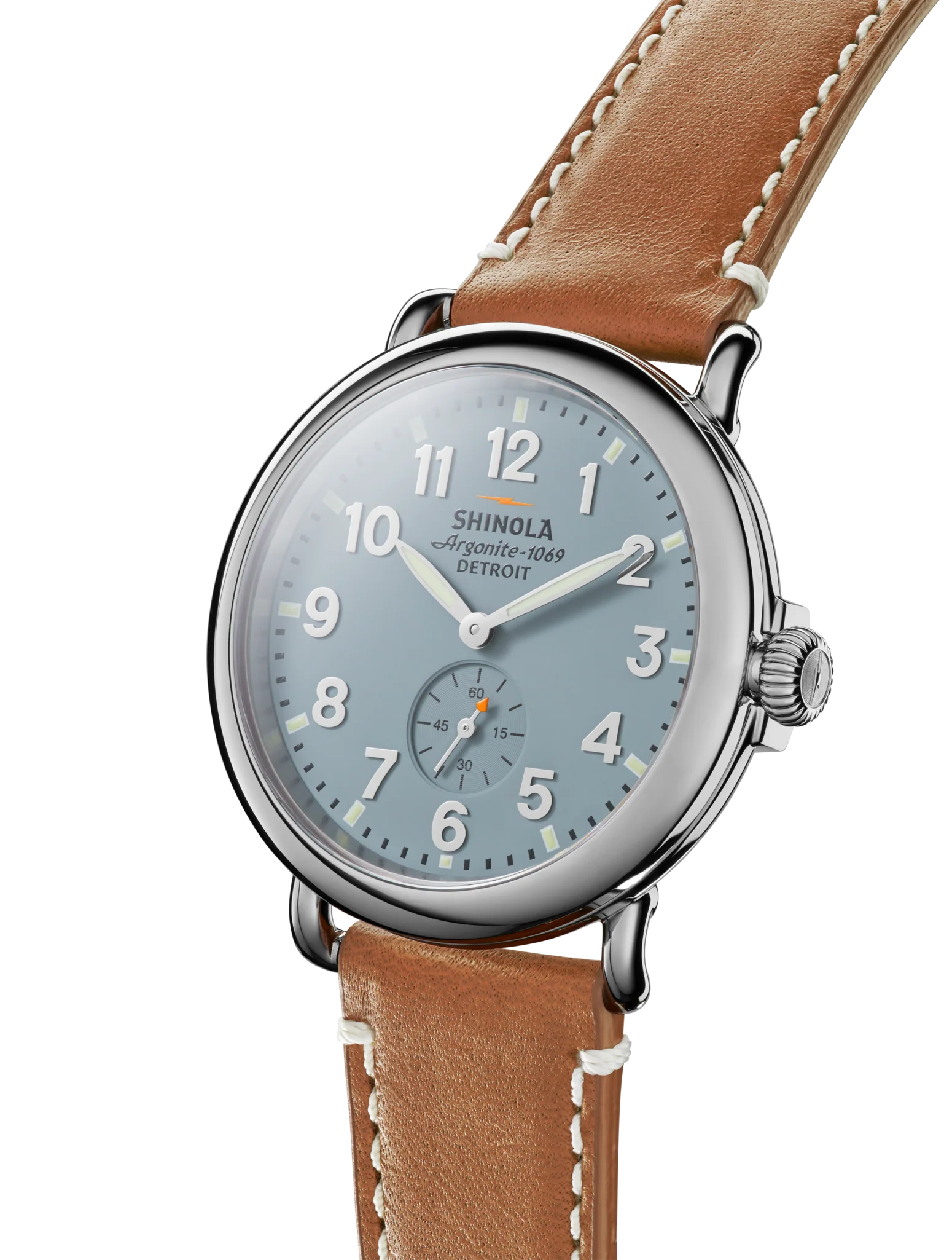Begin each day with purpose. The Runwell Sub Second Watch combines meticulous engineering with timeless design. Powered by the Argonite 1069 high-accuracy movement, this 41mm timepiece features a striking slate blue dial with sub-second precision. The polished stainless steel case is crowned with a classic pumpkin detail, while the supple tan leather strap adds refined elegance. More than a functional instrument, this watch establishes the tone for your entire day—a companion built to endure and inspire.